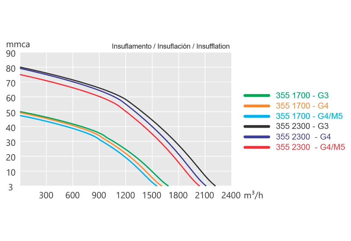 *Technical Specifications for 230 V / 60 Hz. Noise level at 1 meter distance with ducted product. Flow and pressure data already considered with the filter pressure drop at half-life.