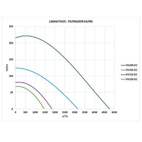 The FH EC line with G4/M5 and F8 filters was developed for outdoor air intake with efficient filtration and high-flow, high-pressure motors. FH EC blowers with filters use G4/M5 and F8 class filters, compliant with NBR 16401-3 standards, ensuring a healthier and impurity-free indoor environment.
