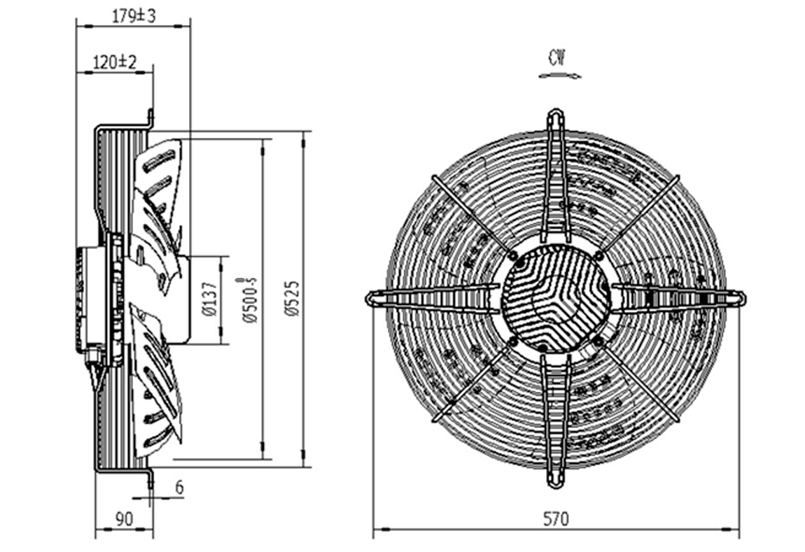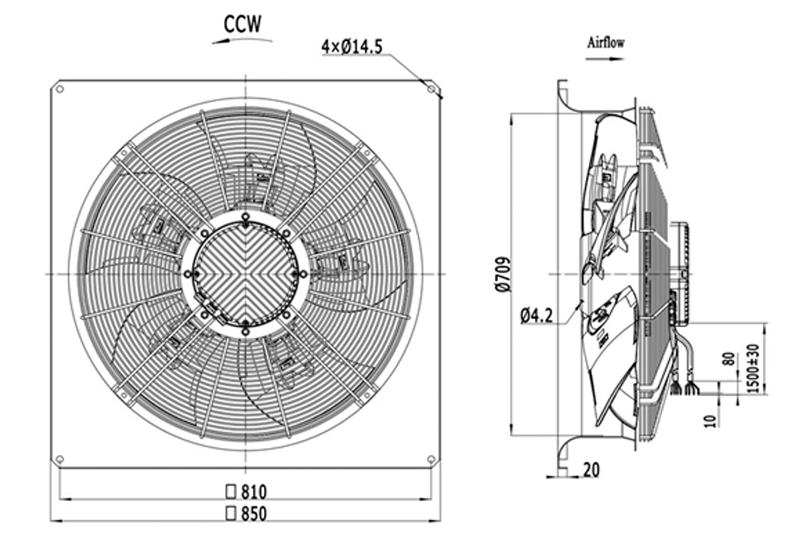 Os modelos utilizam hélices, rotor e estrutura de aço galvanizado. Todos têm proteção IP54, isolamento classe F e certificação internacional. O diferencial de motor Eletronicamente Comutável (EC) garante menor consumo de energia, proteções elétricas incorporadas e facilidade para controle a partir de um sinal analógico em corrente contínua.